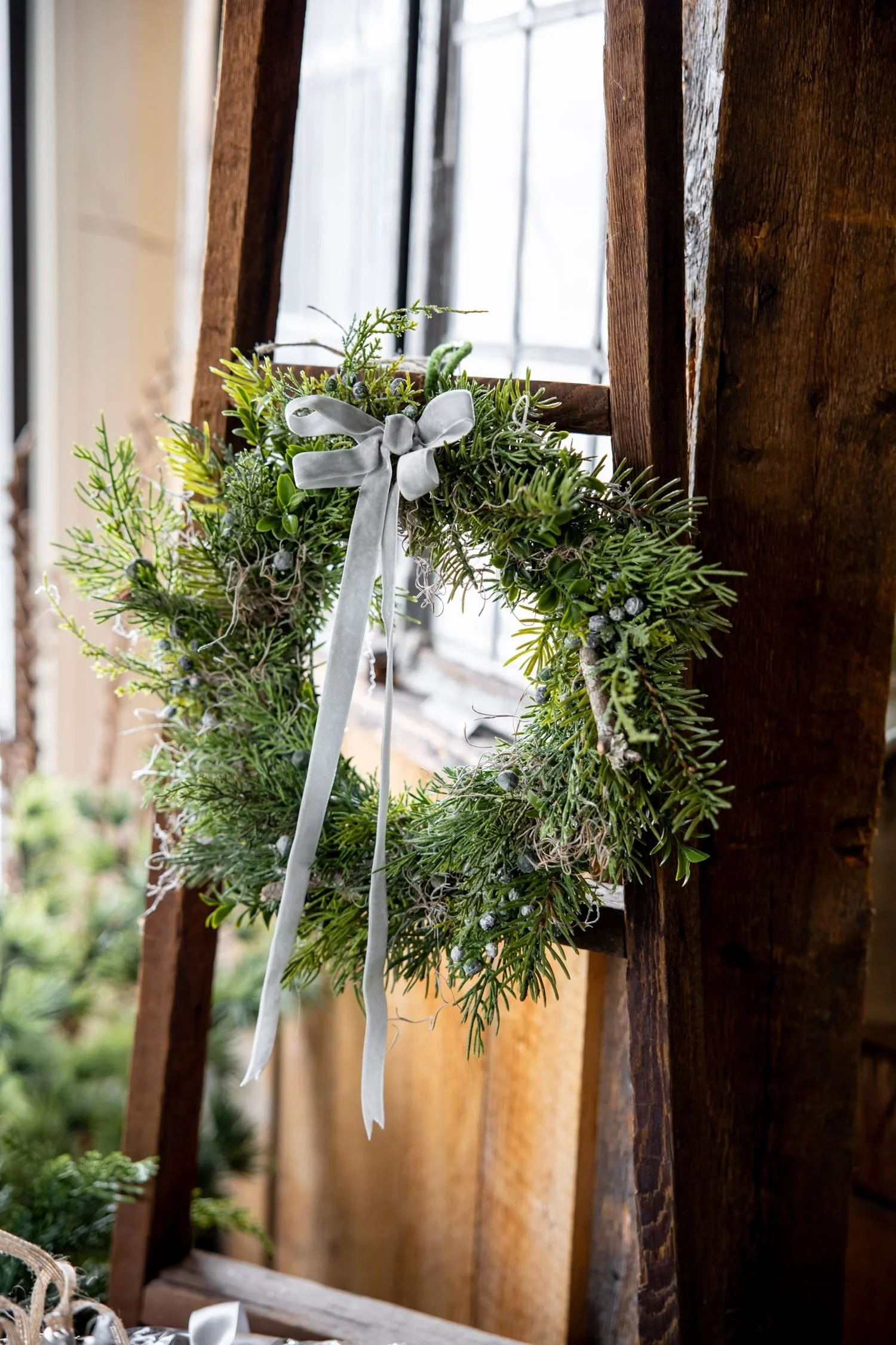 holiday decorations christmas tree pinecone wreaths red ribbon boweer