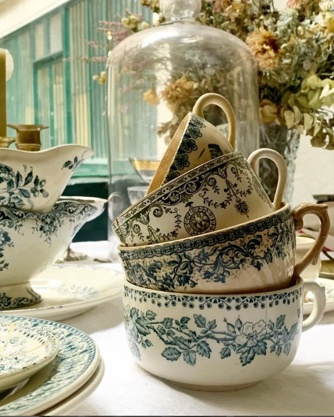 It all started about ten years ago. I’m also a painter, so I have a genuine love for the decoration on these ironstone pieces, the floral motifs, as well as the raw, natural feel of the ceramic. I’m also drawn to their imperfections: the little misalignments in the design, the faded prints… Those flaws completely charmed me.